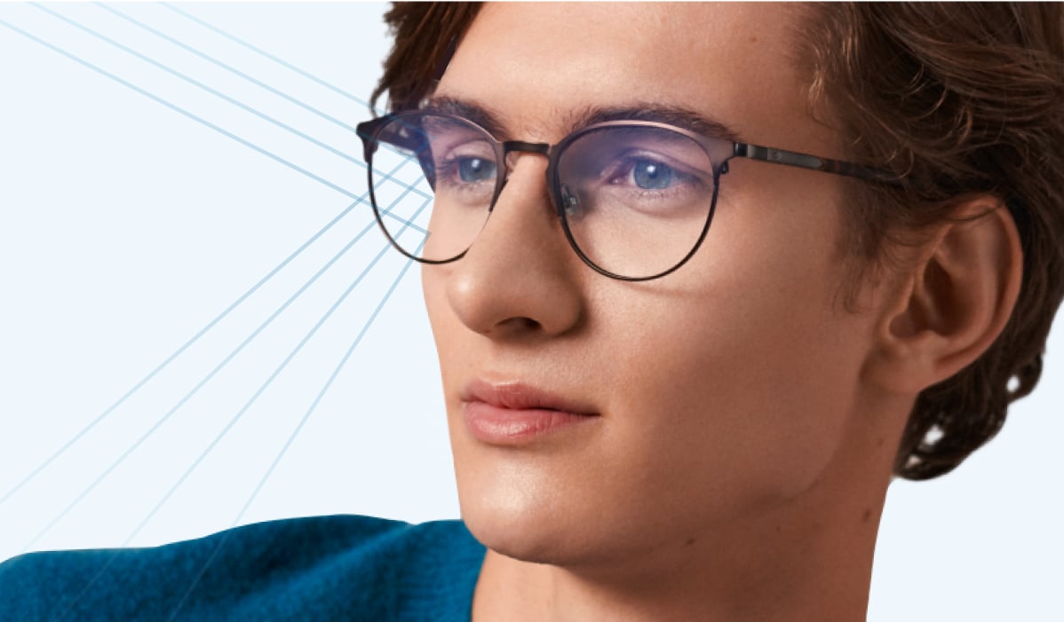 Blue light glasses block harmful blue rays from your devices reducing eye-fatigue and long term visual problems.